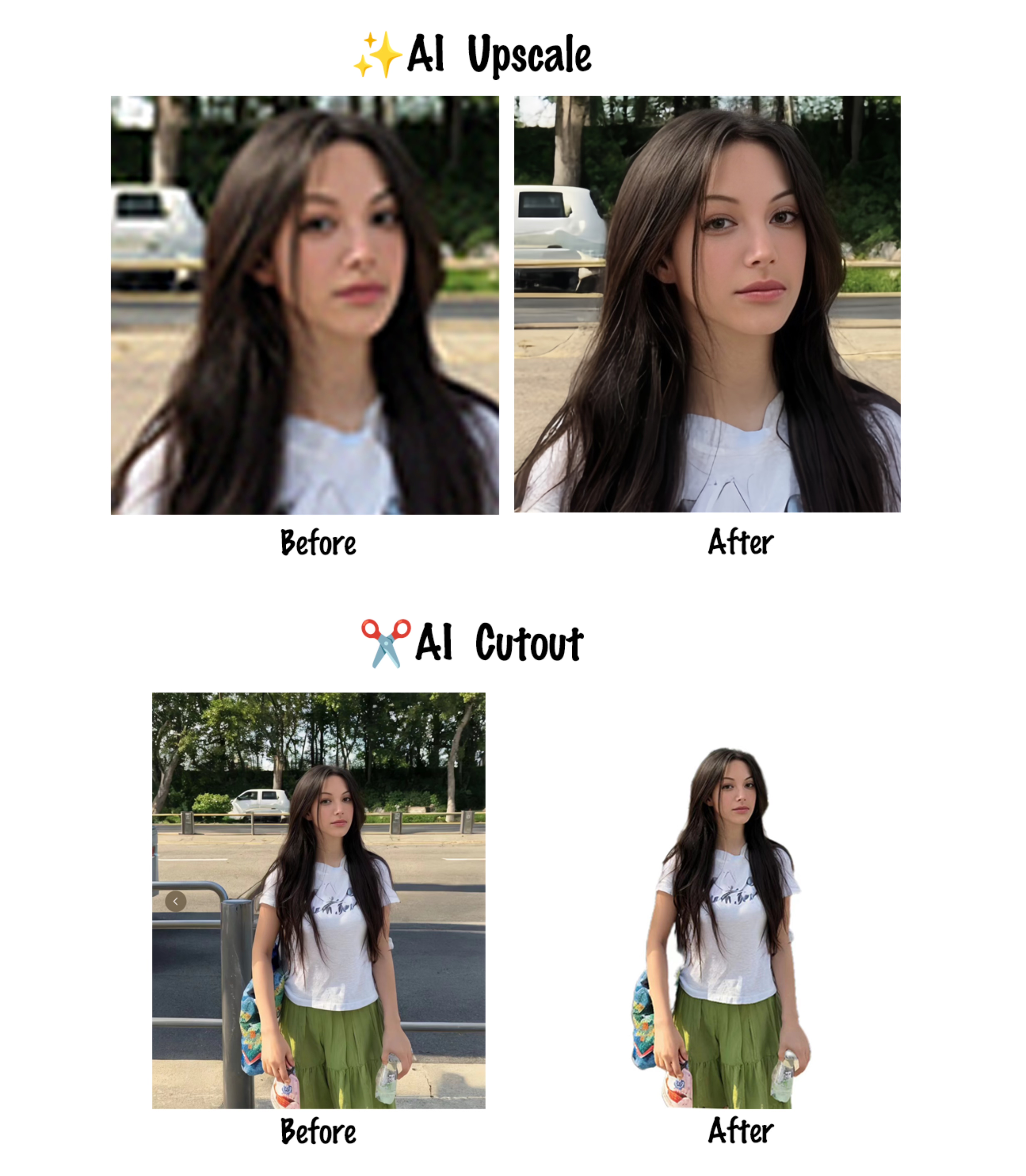 AI Cutout: Remove backgrounds from your photos with just one click! AI PicPro’s advanced technology makes it easy to isolate subjects and create perfect cutouts in seconds. Ideal for creating professional-looking images for presentations, social media, and more.