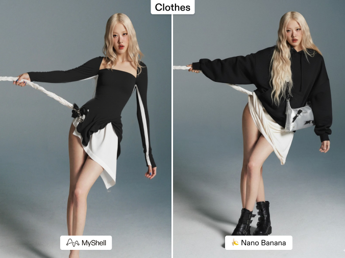 | Clothes | Nano Banana | Cleaner mask recognition |
