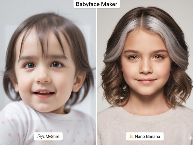 | Baby Face | Nano Banana | Stronger genetic resemblance |