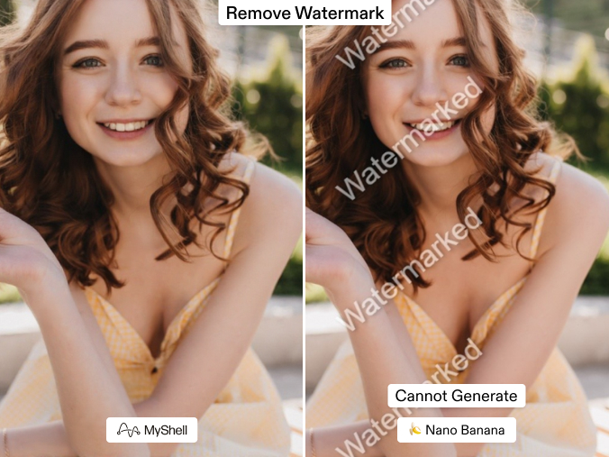 | Watermark Remover | MyShell | Works reliably, Banana often refuses |