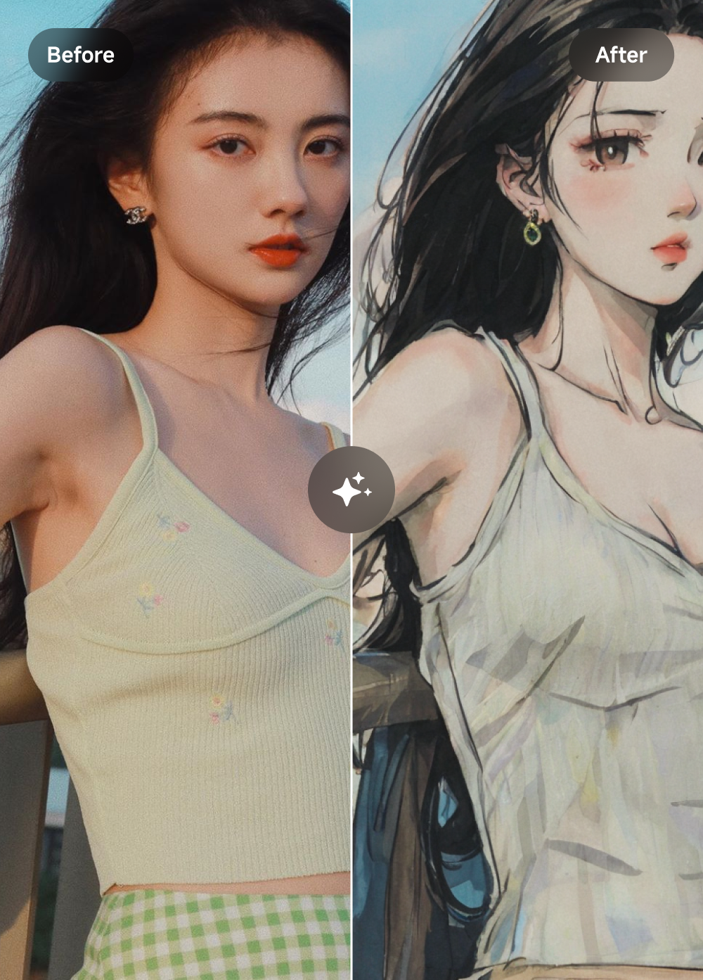 Start your transformation journey now and see your photos come to life in a beautiful watercolor anime style. Unleash your creativity and enjoy the artistic process!