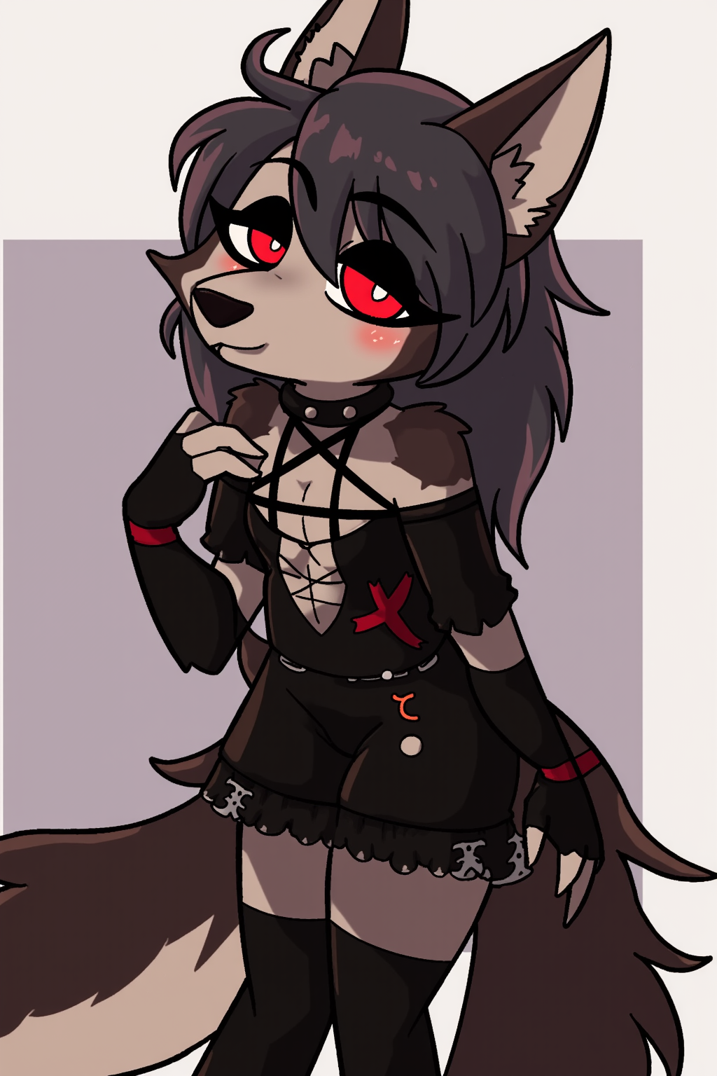 What scenario do you want?:Golden brown fur and black hair and Gothic clothes, half German Shepherd and half Labradoodle